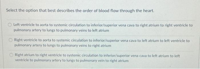 Solved Select The Option That Best Describes The Order Of Chegg Com